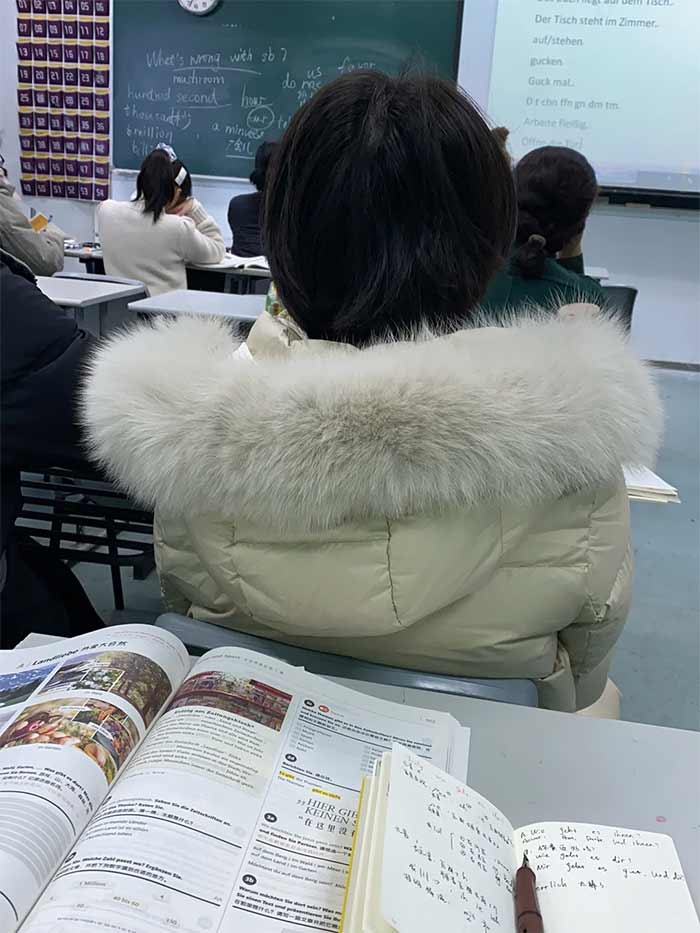 全欧:地址真的很难找啊,并不在同济大学边上。走了很多路终于找到。用的教材语法难度很高,但是据说,说和写会比较老派一点。所以最后就没有选择。